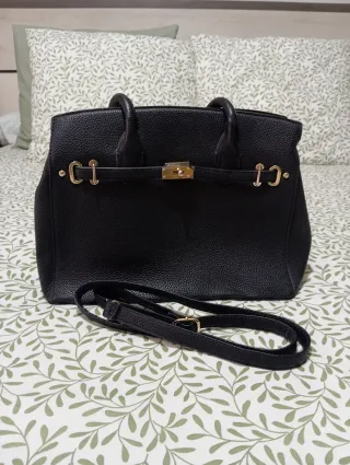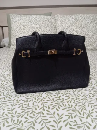 Bolso de mano con un diseño elegante y moderno. A estrenar 40 CMS ancho x 35 CMS alto. Anchura bolso 15 CMS. Pero tiene muchísima capacidad Se me hace grande para mí. - Combinación de color negro y detalles en marrón. - Cremalleras laterales decorativas.