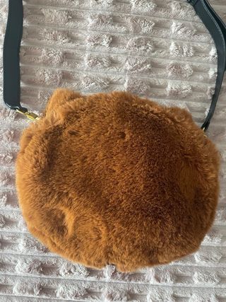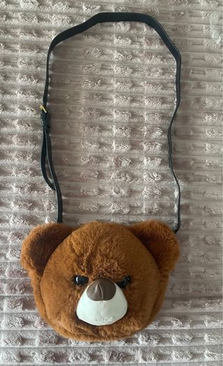 Bolso original con forma de cabeza de oso, hecho de pelo sintético. - Diseño divertido y llamativo. - Correa ajustable para llevar al hombro o cruzado.