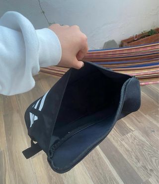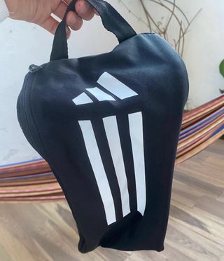 Práctica bolsa deportiva con el logo de Adidas para llevar zapatillas deportivas. - Color negro. - Asa para llevar cómodamente.