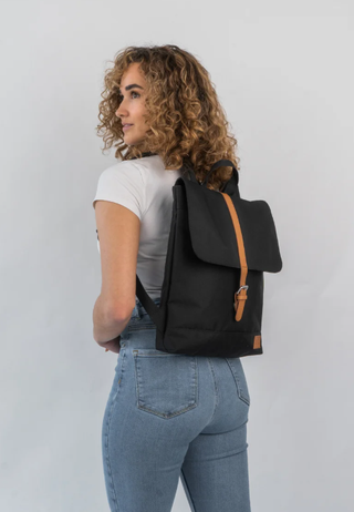 Mochila Jhonny Urban con detalles en cuero. - Color principal negro. - Acabados en cuero marrón.