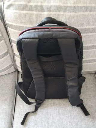 Mochila de la marca EAE Business School. - Color negro con detalles en rojo. - Compartimento principal con cremallera. - Bolsillos laterales de malla. Nunca se ha usado, esta en perfectas condiciones.