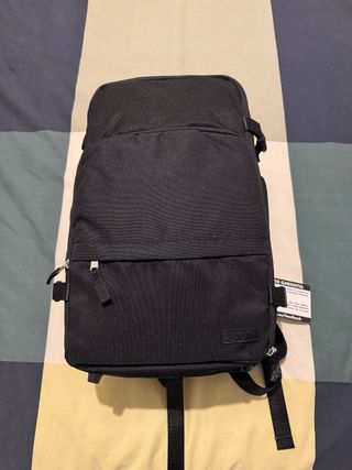 Mochila negra perfecta para viajes en cabina. Diseño moderno y funcional. - Compartimento principal espacioso. - Bolsillo frontal con cremallera. - Correas ajustables para mayor comodidad. - Espacio especial para portatil - Bolsillo laterales y frontales - Ajustes laterales y frontales - Sin uso