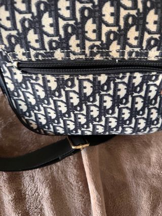 Bolso con el icónico estampado de Dior. - Diseño en lona con detalles en piel. - Combinación de colores beige y negro. - Correa ajustable para llevar al hombro o cruzado.