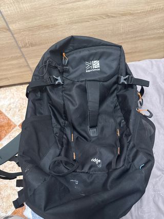 Mochila de senderismo Karrimor. - Compartimento principal espacioso. - Bolsillos laterales de malla. - Correas ajustables para mayor comodidad. - Cierre superior con cordón y hebillas.