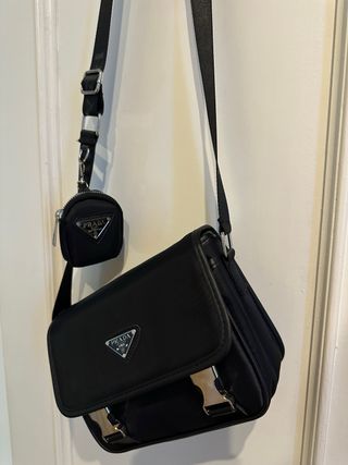 Bolso de la marca Prada en color negro, con un práctico monedero a juego. - Diseño elegante y moderno. - Incluye un pequeño monedero. - Correa ajustable.