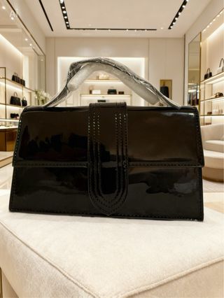 Elegante bolso de charol. - Diseño moderno y sofisticado. - Asa superior para llevar en la mano o al hombro.