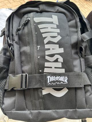 Mochila de la marca Thrasher en color negro. Diseño moderno y funcional. - Compartimento principal espacioso. - Bolsillo frontal con cremallera. - Correas ajustables para mayor comodidad. - Logo de Thrasher en la parte frontal. Es un regalo que me hicieron y no uso