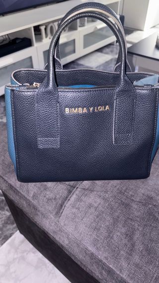 Bolso de mano de la marca Bimba y Lola. - Diseño bicolor en negro y azul. - Logo dorado en la parte frontal.