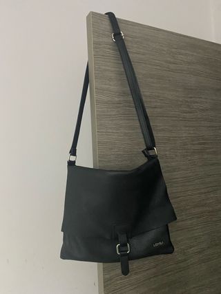 Bolso de piel con un diseño elegante y práctico. - Material: Piel - Color: Negro - Cierre con hebilla - Correa ajustable