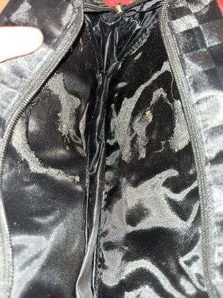 👛 Bolso pequeño, como de fiesta, color negro y de tela por fuera y por dentro de imitación piel color azul oscuro. Es básico, lo vendo porque nunca lo uso 😅
