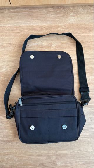 Bandolera de nylon en color negro con detalles dorados. Asa larga y ajustable. Consta de dos bolsillos delanteros y uno trasero con cierre de cremallera. Interior amplio con diferentes bolsillos (uno con cremallera), con cierre de cremallera. Marca: Paco Martínez. Como nuevo, apenas se ha utilizado, nada roto ni rozado. Alguna pregunta, no dudes en contactar. Más artículos de ropa-complementos y otros artículos variados en mi perfil.