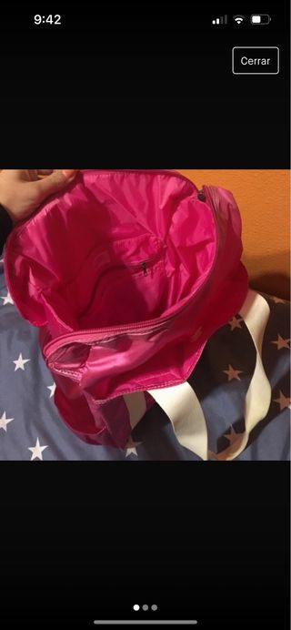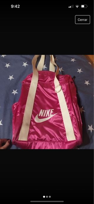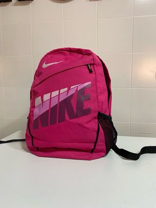 Mochila rosa con logotipo NIKE. Tiene un bolsillo exterior con cremallera. La mochila tiene gran capacidad para llevar libros y demás. Las asas se pueden regular y cuenta con una red para llevar la botella de agua Conservada como nueva. Si te interesa escríbeme 🙋🏻♀️