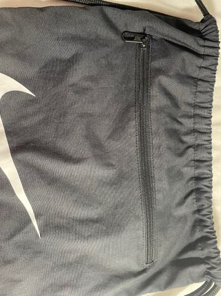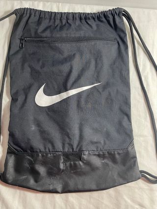 Mochila saco deportiva de la marca Nike. Vendo mochila saco Nike Brasilia Training Gym Sack original en color negro con logo swoosh blanco grande. • Capacidad aprox. 18L, ideal para gimnasio, entrenamiento, fútbol o día a día. • Bolso frontal con cremallera para llaves/móvil. • Tejido resistente al agua, forro gris interior. • Etiquetas originales intactas • En excelente estado, poco usada, sin manchas, roturas ni desgaste. Limpia y lista para usar. Precio negociable en mano. Envío con Wallapop Shipping o entrega en Zaragoza. ¡Pregunta lo que necesites! Precio negociable