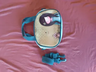 Bolso original Santoro London Gorjuss. Color verde agua con ilustración frontal de muñeca. Incluye asa larga ajustable para llevar como bandolera. Interior limpio y amplio, cierre con cremallera. Muy bonito y práctico. En muy buen estado. Ideal para niñas o fans de Gorjuss 💚 Entrega en mano.