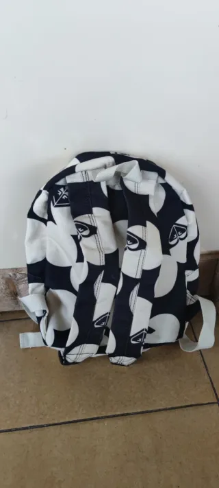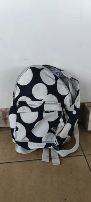 Mochila infantil con un divertido estampado de lunares. - Diseño con lunares grandes en blanco y negro. - Cremallera principal. - Bolsillo frontal con cremallera. - Tiras ajustables.