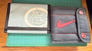 Dos carteras de nylon con diseños distintivos de Nike y El Niño. Se trata de dos carteras que no se han usuado y son de su marca original, compradas hace unos 25 años. - Cartera con logo de Nike y costuras rojas. 18€ - Cartera con diseño de El Niño en blanco. 15€