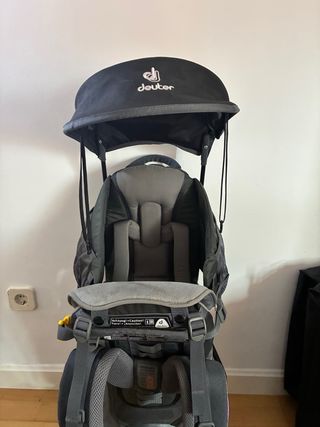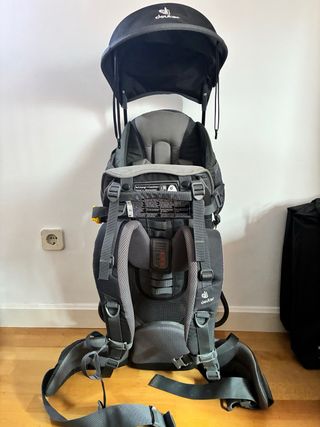 Mochila portabebés Deuter, ideal para excursiones y paseos. - Diseño ergonómico para el confort del niño y del portador. - Capota solar integrada. - Cinturón lumbar acolchado para una mejor distribución del peso. - Múltiples compartimentos de almacenamiento.