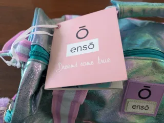 Mochila escolar Enso de 42 cm con un diseño encantador. - Color principal lila con estampado floral. - Bolsillo frontal con cremallera y detalle de corazón azul. - Tirantes acolchados para mayor comodidad. - Asa superior para colgar. - Dimensiones: 42 cm (alto) x 32 cm (ancho) x 14 cm (profundidad). Pdb: escolar, colegio, escuela, estuche, mochila, niño, niña, libreta, uniforme, academia, instituto, eso, liceo, bachillerato, bachiller, prima