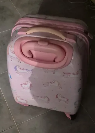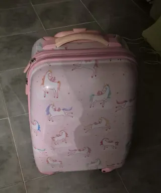 Maleta de cabina con un divertido diseño de unicornios sobre fondo rosa. Perfecta para los viajes de los más pequeños. - Diseño estampado de unicornios. - Tamaño de cabina. - Asa extensible y ruedas para facilitar el transporte.