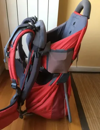 Mochila portabebés muy confortable y segura que cuenta con la suspensión acolchada Tergolight, un sistema que permite transportar la carga de forma fácil y cómoda en cualquier terreno. Indicada para niños de hasta 18 kg de peso. Asiento AJUSTABLE. Altura del torso ajustable. Asas en la parte frontal y la trasera. Cinturón acolchado con bolsillo. Soporte REPOSAPIÉS. Incluye un TECHO para proteger al bebé del sol. COLCHONETA para cambiar pañales. Las importantes correas del ARNÉS, y las asas necesarias para la seguridad de tu hijo han sido resaltadas en color naranja para su fácil y rápida identificación. Usada en 4 salidas
