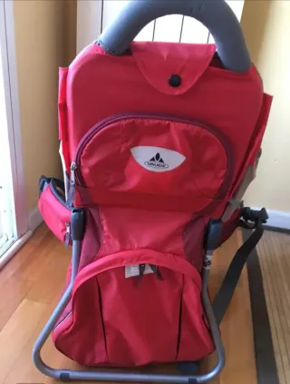 Mochila portabebés para niños de hasta 20 kg. Es cómoda y cuenta con un diseño ergonómico. Muy poco usada. - Tirantes acolchados ajustables. - Soporte para la cabeza. - Bolsillo lateral. - Patas de apoyo para estabilidad.