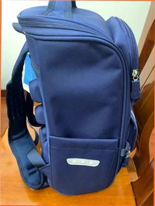 Mochila escolar de color azul, ideal para niños. Cuenta con varios compartimentos para organizar todo. - Compartimento principal con cierre. - Bolsillo frontal con solapa. - Dos bolsillos laterales.