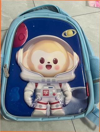 Mochila escolar con un divertido diseño de mono astronauta, perfecta para los más pequeños. - Diseño tridimensional de mono en traje espacial. - Fondo estrellado con planetas. - Compartimento principal espacioso.