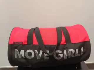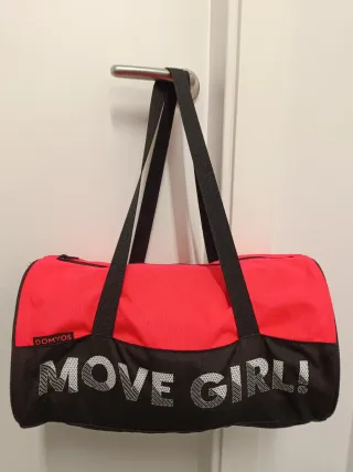 Bolsa deportiva tipo tubo para niña de la marca Domyos (Decathlon) para llevar al hombro a clases de danza o gimnasia. Medidas: 35 cmx21 cm
