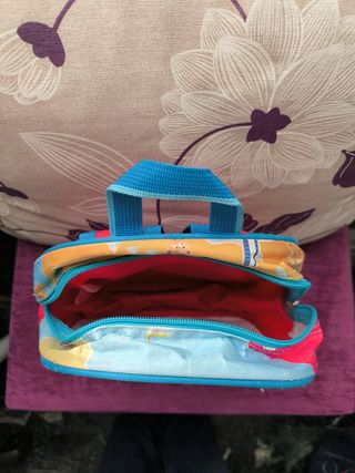 Mochila de popis muy bonita. El tamaño ideal para echar merienda o almuerzo y una botella de agua. Como se ve en las fotos, esta nueva, muy poco usada.