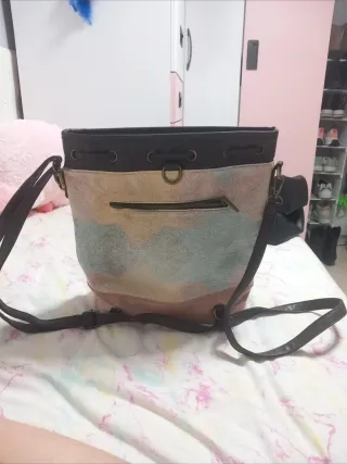 Vendo pack de 2 bolsos ideales para niña o adolescente. El lote incluye: 1. Bolso de Mano Rosa: Estilo "bowling" o maletín en color rosa pastel. Tiene asas cortas y correa larga. Detalle de corazón en el asa. Muy estilo "Coquette". 2. Cartera de Lentejuelas: Marca Sweet Miss. NUEVO CON ETIQUETA. Lentejuelas reversibles (dorado/plata) con mucho brillo. Ideal como neceser, estuche o bolso de mano para fiesta. Se venden los dos juntos. 📍 Ubicación: Motilleja / Albacete.