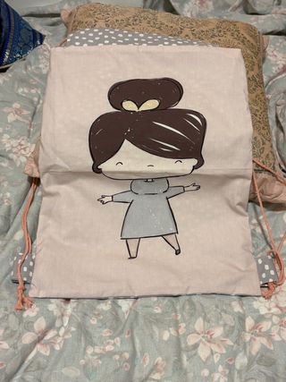 Conjunto de cuatro mochilas y bolsas infantiles. Ideales para llevar al cole o actividades extraescolares. Son pequeñas y ligeras, perfectas para niños y niñas. -Un bolsito pequeño. - Dos mochilas con cordón. - Una bolsa de mano pequeña.