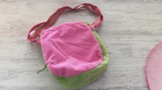 Bolso de peluche con un divertido diseño de Diddl. Muy buena calidad, producto alemán. Se retira en Málaga sector Malagueta. - Material suave y agradable al tacto. - Correa ajustable para llevar cruzada o al hombro. - Adorno frontal con personajes. - Cierre de cordón.