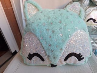 Bonito lote de mochila, monedero y cojin para niña. A la mochila le falta el adorno de la cremallera. Ver fotografías. Medidas cojin 35 x 28 cm aproximadamente y del bolso- mochila 20x 27 cm aproximadamente.