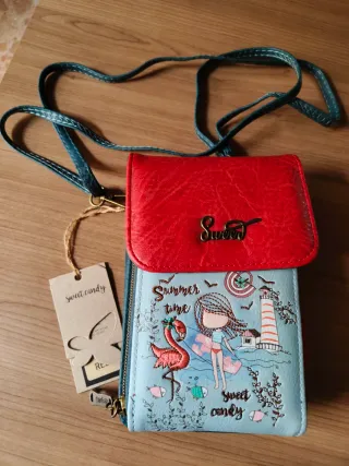 Bolso de la marca Sweet Candy. - Cierre de solapa con detalle de logo. - Estampado frontal con flamenco, niña y faro. - Correa ajustable para llevar al hombro o cruzado. Dos amplios bolsillos.