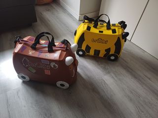 Se venden dos maletas infantiles Trunki, una de color amarillo y otra marrón. - cada una por 18 euros, si te llevas las dos 30 euros. - Ideales para viajes y para que los niños las lleven cómodamente. - Diseño divertido y práctico.