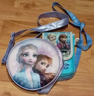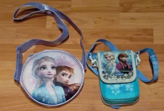 Conjunto de dos bolsos infantiles con diseño de Frozen. - Bolso redondo con imágenes de Elsa y Anna. - Bolso rectangular con solapa. - Correas ajustables.