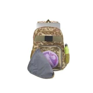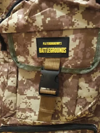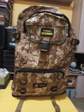 Mochila con estampado de camuflaje militar, ideal para actividades al aire libre.Esta mochila militar de camuflaje es una mochila de camping inspirada en el tema "Battlegrounds", disponible en capacidades de 65 litros o similares y cuenta con múltiples compartimentos y correas ajustables. 61x40x16 cms - Diseño de camuflaje en tonos beige y marrón. - Cierre de hebilla en la solapa superior. - Bolsillo frontal con cremallera.