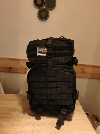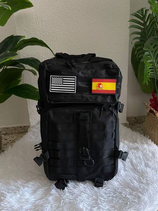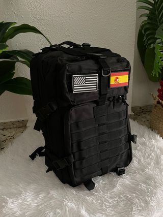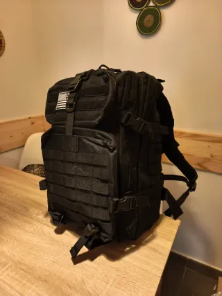 Mochila todoterreno de gran capacidad (50 litros)! 🎒 Vendo esta mochila táctica en color negro, ideal tanto para viajes largos como para entusiastas del fitness (estilo Crossfit), senderismo o camping. Es muy resistente y ofrece una organización excelente. Características principales: • Capacidad: 50L (espacio de sobra para ropa, calzado y equipo). • Sistema MOLLE: Panel frontal y lateral para colgar accesorios adicionales. • Diseño Ergonómico: Correas ajustables en hombros, pecho y cintura para mayor comodidad y reparto del peso. • Material: Tela de alta resistencia, repelente al agua. • Compartimentos: Varios bolsillos internos y