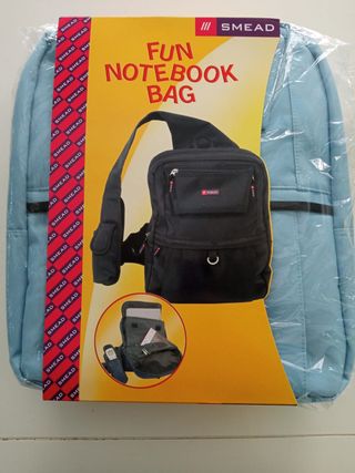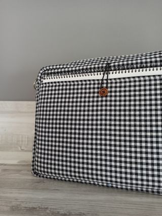 Bolso notebook con bandolera y con asas guardadas en los laterales. Esta nuevo. Medidas: alto 24cm y ancho 28cm.