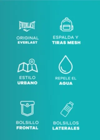 compartimientos - Su compartimiento principal es amplio con una separación acolchonada para transportar una notebook 15.6” - Interior forrado - Bolsillo con cierre curvo en su frente - Bolsillos de red en cada uno de sus laterales - Cintas de ajuste en sus laterales - Correas de espalda acolchonadas - Confeccionada en Poliéster - Medidas aproximadas: 46 cm de alto, x 32 cm de ancho x 13 cm de profundidad