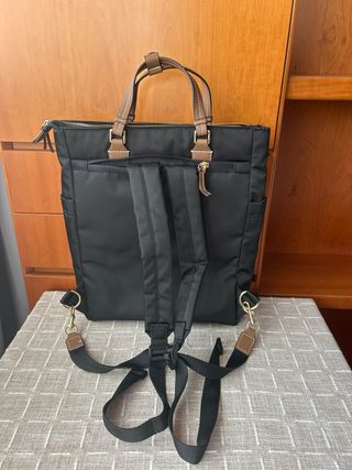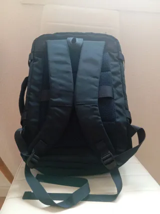 - 4 cremalleras/compartimentos. En la última 2 de estrechos para guardar el iPad y/o doc importantes/cartera. - 2 bolsillos laterales. - Mochila cómoda acolchada para la espalda. - Correas ajustables. - Poco. - Precio original: 75€.