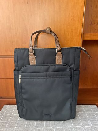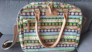 Bolso de mano y hombro, ideal para llevar documentos y ordenador portátil. Cuenta con un diseño elegante y práctico. Utilizado muy poco - Compartimento principal con cierre de cremallera. - Bolsillo frontal con cremallera. - Asa de mano y correa de hombro ajustable. - Detalle de piel en el frontal.