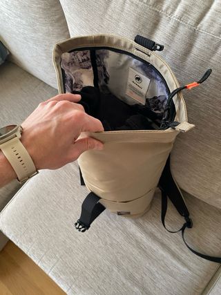 Mochila versátil de la marca Mammut, ideal para el gimnasio, universidad o rutas montaña sencillas. Su diseño tipo saco amplio si hace falta - llavero mosquetón mammut de regalo - alta calidad y resistente - Ordenador de 16 o mas entra bien - Entran 2 sudaderas + ordenador, chanclas, libros... Tiene 2 meses y valió 80€, la vendo por que no me entra todo lo del trabajo