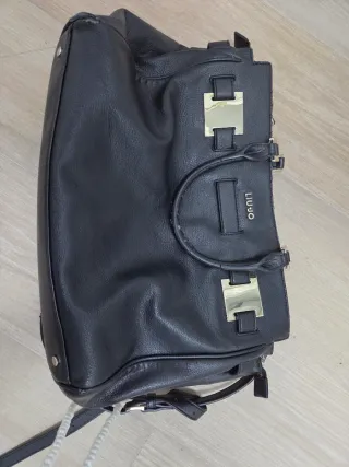 Bolso Liu Jo original, de gran tamaño en color negro con detalles dorados. - Diseño elegante. Perfecto para ordenador, tableta. Como bolso de viaje. Gran capacidad. - Asa de mano y correa para colgar cruzado. Aguanta muchísimo peso. - Cierre con cremallera. - Medidas 45x26 - Tiene 3 compartimentos grandes y múltiples bolsillos. - Signos de desgaste en algunos bordes.