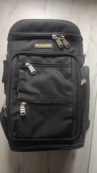 Mochila M-Audio en color negro, diseñada para llevar tu ordenador y equipo. - Compartimentos acolchados para protección. - Múltiples bolsillos para organización. - Cremalleras resistentes. Medidas: Altura 55cm - Ancho 32cm - Profundo 20cm Ideal para llevar ordenador,esa de sonido pequeña, pack de efectos y otros equipos hardware + cableado.