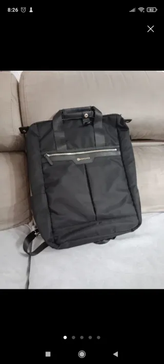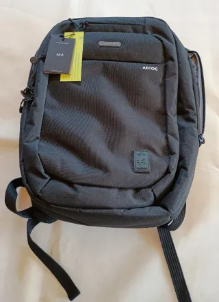 Mochila para ordenador/trabajo. Sin estrenar, aún en su paquete. Buenos acabados, y varios compartimentos. Tela como nylon.