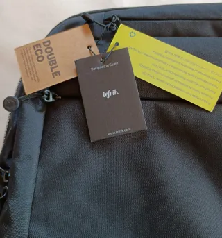 Mochila de la marca Lefrik en color negro, diseñada para llevar un ordenador portátil. - Compartimento principal espacioso. - 2 bolsillos frontales con cremallera, 7 o más grande y otro arriba más pequeño. - Correas de hombro ajustables y acolchadas. - Asa superior para llevar en mano.