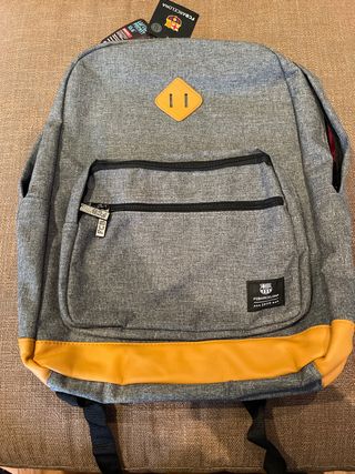 Mochila FC Barcelona Gris detalles de cuero marrón