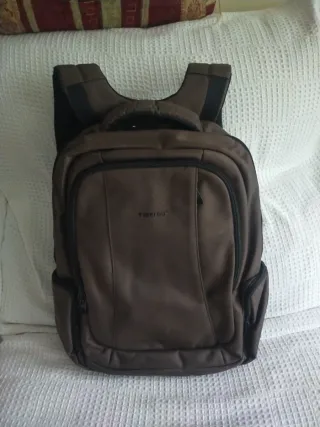 Mochila urbana de la marca Tigernu, con dos compartimentos delanteros, dos laterales, uno central de más capacidad y otro trasero para ordenador portátil, todos con cremallera, cinchas y zona lumbar acolchadas, asa acolchada superior, en color marrón. Ideal para el día a día. Como nueva. - Diseño moderno y funcional. Medidas 45x38x14cm - Compartimentos interiores para organización. - Correas ajustables para mayor comodidad.