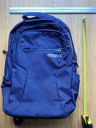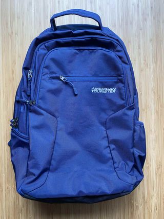 Mochila urbana de la marca American Tourister en color azul. Perfecta para el día a día o para viajes cortos. Asas regulables, 3 bolsillos frontales y dos laterales. Adecuada para llevar ordenador portátil o tablet. Funda para lluvia extraíble en bolsillo oculto en la base. - Diseño moderno y funcional. - Amplio compartimento principal. - Bolsillo frontal con cremallera. - Asas acolchadas y ajustables.